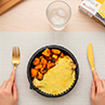 Carne de suprema de pollo marinada aditivada refrigerada (carne de pollo, agua, dextrosa, sal, ACREG: INS 331, EST: INS 452i, ESP: INS 407), calabaza, agua, pan rallado, queso de crema libre de gluten, choclo, huevo, mostaza, sal, aceite vegetal, caldo de verdura deshidratado, mezcla de especias deshidratadas – condimento para pizza. CONTIENE HUEVO, DERIVADOS DE TRIGO Y DE LECHE.